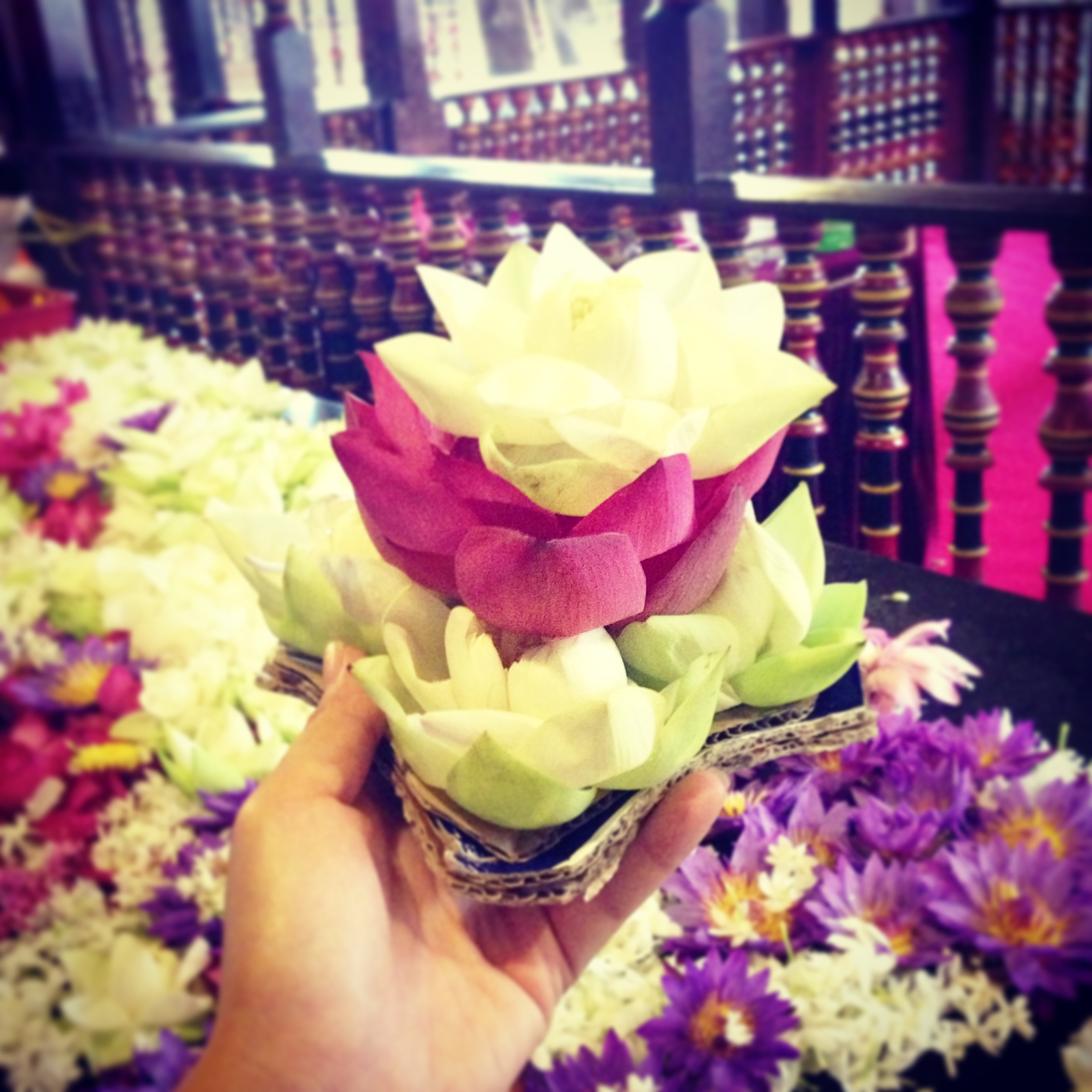 14Dec2014 Flowers in Kandy Posted in Travel by The Mimi Amore Beautiful floral offerings in Kandy, Sri Lanka.